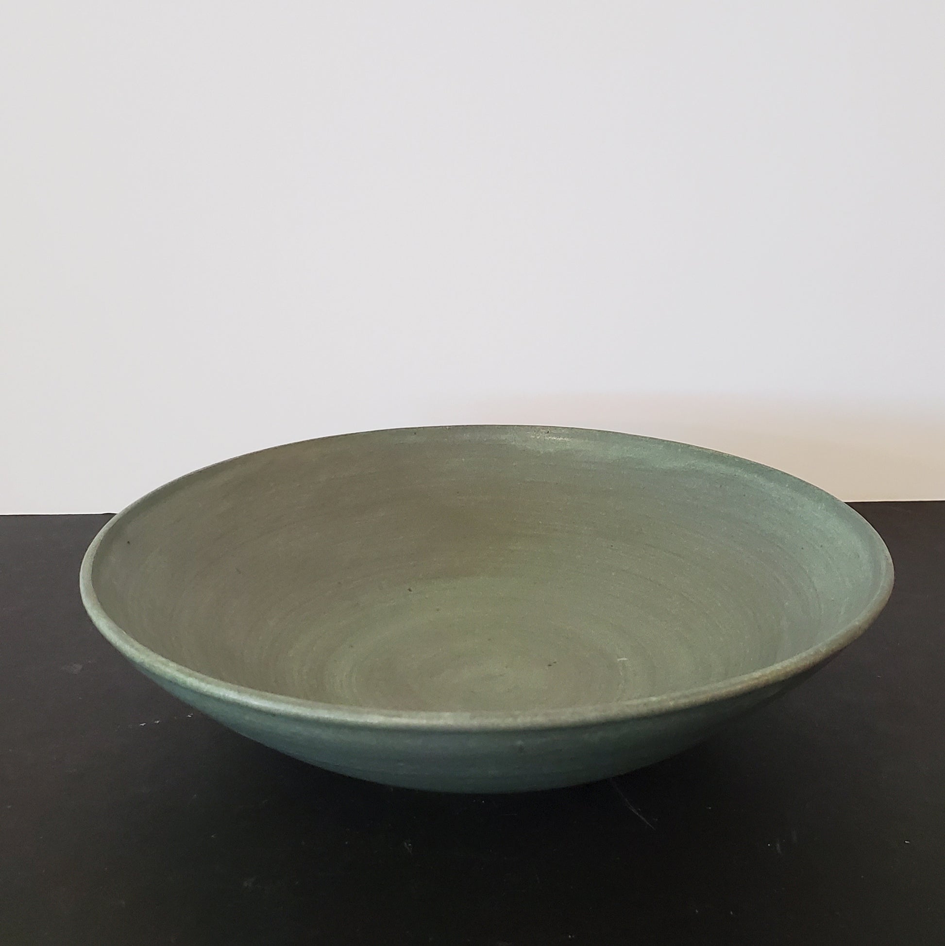 A handcrafted ceramic bowl in a soft sage green glaze, with a little antique look. Ideal for serving or displaying with simple elegance. Microwave and dishwasher safe.